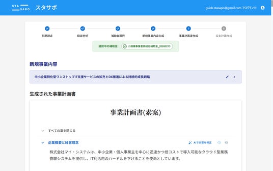 事業内容:補助金申請支援サービス「スタサポ」の開発・運営