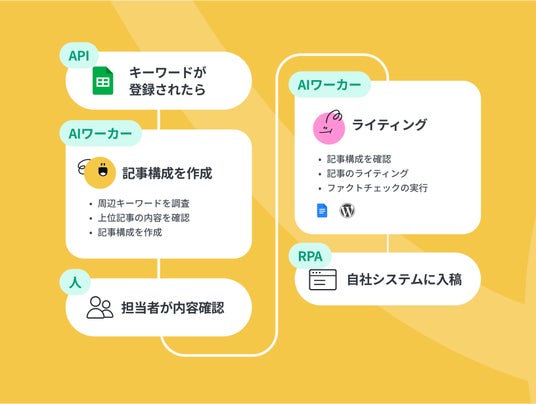 AI・API・RPA・OCRなどの様々な技術を組み合わせ、あらゆるデスクワークを自動化するハイパーオートメーションツール「Yoom(ユーム)」を開発・運営するYoom株式会社(本社:東京都千代田区、代表取締役社長:波戸崎 駿)は、新機能「AIワーカー」の提供を開始したことをお知らせいたします。