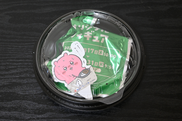 持ち帰りでもトレーシートが付属するとは。しかも紙製ではなく、薄いプラスチックのようなしっかりとした素材で、持ち帰っても折り目が付きません。自宅でもシートを敷いて、ちいかわの世界観を楽しめます。