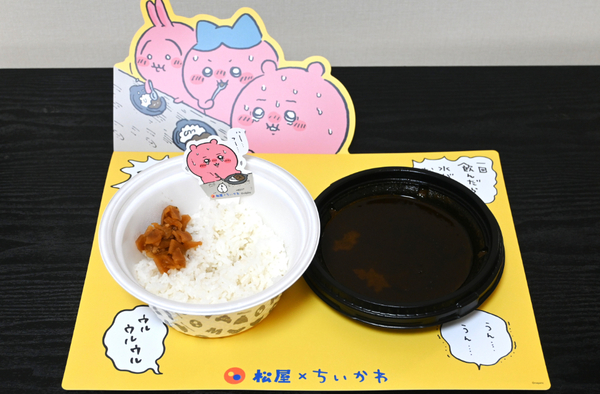 正式名称は「松屋 ちいかわの鬼辛カレー」。オリジナルフィギュア付きで価格は980円。