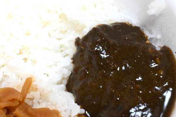 見た目は黒く、もったりとした濃厚そうなルウ。目立つ具材はなく、ルウで勝負しにきた雰囲気です。