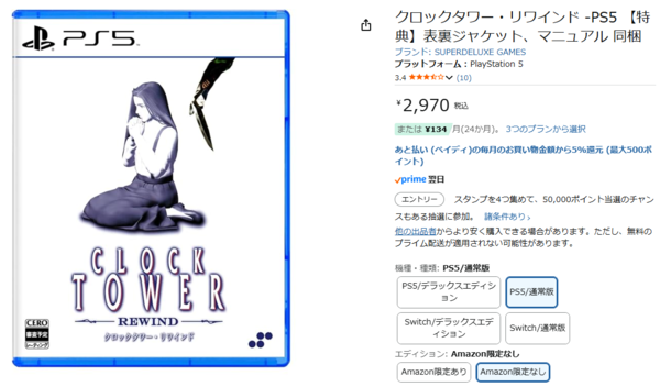 そんな私が今回オススメしたいゲームタイトルは、「クロックタワー・リワインド」です。今なら2970円でAmazonから購入できます。