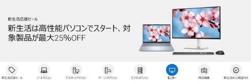 Dell公式サイトで「新生活応援セール」を開催中。ノートPCやデスクトップPC、ゲーミングPC、モニターなどが対象で、製品によっては最大25%オフ。