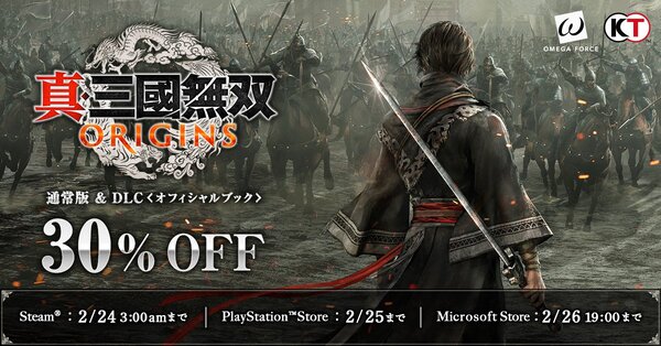 『真・三國無双 ORIGINS』は、春節にあわせて、以下のプラットフォームにて期間限定セールを開催中。セール期間は、プラットフォームによって異なるので、下記を確認してほしい。