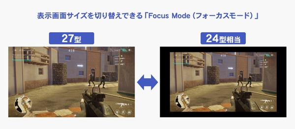 27型の画面に24型相当の画面サイズで映せるFocus Mode(フォーカスモード)」機能