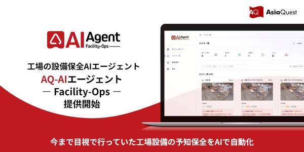 アジアクエスト株式会社は2月12日に、同社が提供するAIエージェント搭載型業務効率化サービス「AQ-AI エージェント」シリーズにおいて、監視カメラ映像の解析AIとAIエージェントを連携させ、工場設備の予知保全を自動化するサービス「AQ-AIエージェント Facility-Ops」の提供開始を発表した。製造工場などの現場における点検・監視業務の人手不足や、判断の属人化といった課題に対し、AIエージェントが現場の状況を理解し、対応判断を支援。保全業務の高度化と効率化を図るという。