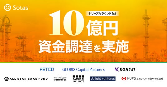 化学産業の情報基盤をつくるSotas株式会社(所在地:神奈川県川崎市、代表取締役社長:吉元 裕樹、以下「当社」)は、シリーズAラウンドの1stクローズとして第三者割当増資を実施し、10億円の資金調達を実施いたしました。本ラウンドでは、グロービス・キャピタル・パートナーズ株式会社をリード投資家として、化学専門商社の株式会社ツカサペトコおよび弘栄貿易株式会社を新たに引受先に迎え、既存投資家のフォローオン投資もいただいています。