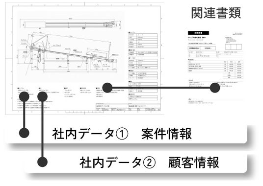 見積書・仕様書・検査成績書などの関連書類、さらに基幹システムのデータを自動で紐付け