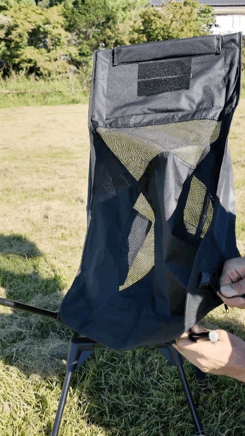 AXIS 360は独自の折りたたみ機構により、使用時は幅60cm×奥行き45cm×高さ95cmのハイバック仕様ながら、収納時は45cm×21cm×18cmとコンパクトにまとまります。重量約3kgと大型のアウトドアチェアの中では軽量で、車載スペースを圧迫せずに持ち運びも楽々です。
