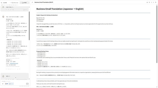 海外取引を行う企業では、英文メールの作成や契約書の確認など、日常的に英語での文書業務が発生します。従来の翻訳ツールは単語や文章を機械的に置き換える「直訳」が中心であり、文脈や意図を踏まえた表現の調整は人の手で行う必要がありました。特に、相手企業の背景や取引の前提を踏まえた言い回しの選択、文章の長さの調整、ニュアンスの微調整といった作業は、担当者の英語力に依存し、時間的な負担となっていました。また、長文の質問票や企業調査報告書の要点抽出、複数文書の整合性確認、議事録作成、法令確認といった文書業務全体においても、確認作業に多くの時間を要し、意思決定のスピードが低下する課題がありました。