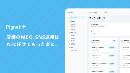株式会社Pignetは、SNS運用代行会社や飲食店を中心とした多店舗展開企業向けに、AIによるSNS・MEO運用支援サービス「Pignet プラス」の提供を開始いたしました。(過去に発表した飲食店向けサービスであるPignetを、複数店舗事業者・SNS向けに新開発したのがPignet プラスです)