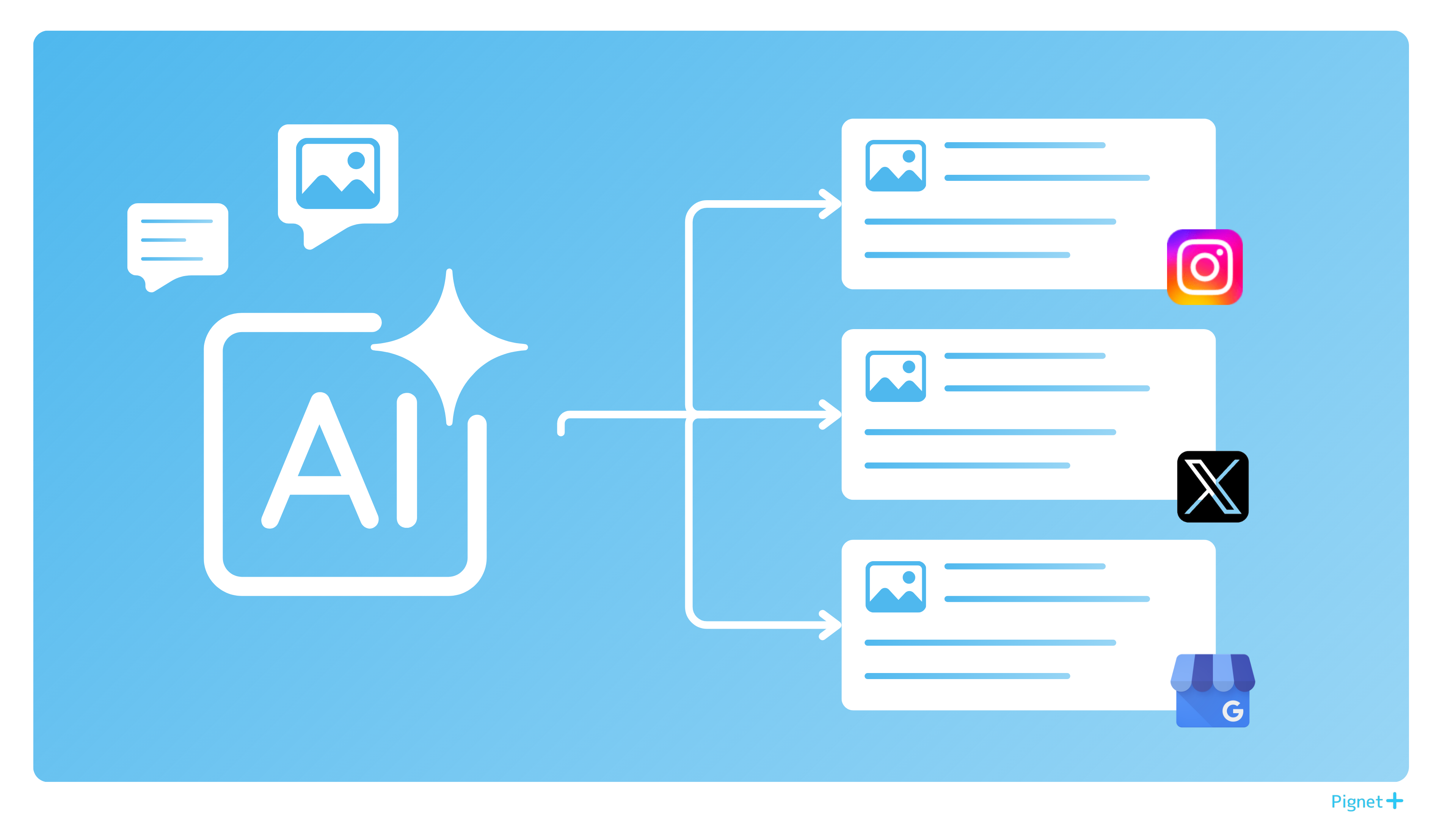 Instagram・X・GoogleビジネスプロフィールのSNS運用を、AIが作成から投稿まで一気通貫でサポート