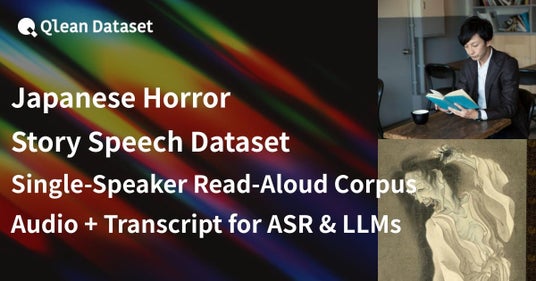 Qlean Dataset、「日本語・1話者・怪談系テーマの朗読音声コーパスとトランスクリプト」を提供開始