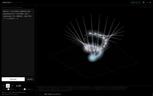 言葉で光を動かす。AIが照明演出をリアルタイムで生成する「SPOTLIGHT AI」を真鍋大度率いるsonicPlanetとTamatech Labが開発