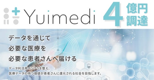 医療データ利活用のインフラを整備する株式会社Yuimedi(本社:東京都中央区、代表取締役:グライムス英美里、以下「Yuimedi」)は、総額4億円の資金調達を実施したことをお知らせいたします。