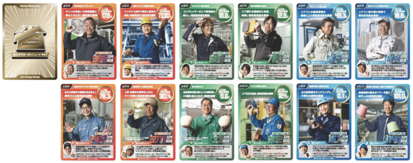 まるで市販のトレーディングカードゲームのような“いかにも”なデザインで、火、水、風などの属性も表示されている。しかし、枠の中には伝説のドラゴンや恐ろしいモンスターではなく、“笑顔で省エネに取り組むおじさんたち”がプリントされている。眺めていると、じわじわと面白い。なんならちょっと遊んでみたい。残念ながら、市販はされないようだが……。