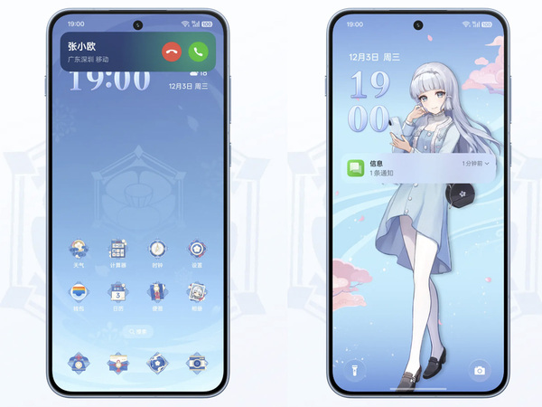 アイコンや壁紙などのテーマも神里綾華をイメージしたものになっています。さらに着信や通知、アラームの音として神里綾華の声が採用されています。お気に入りの声で通知が受けられるわけです。
