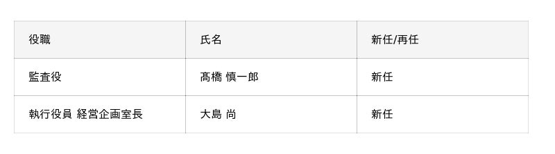 2025年12月26日付で、新たに監査役に高橋 慎一郎、執行役員 経営企画室長に大島 尚が就任したことをお知らせいたします。