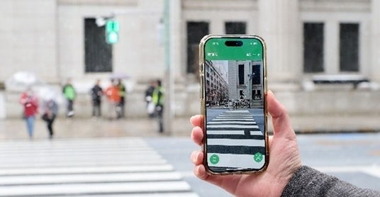 カメラ情報をもとに、AIが信号機の色を判別し、音声で横断可能なタイミングを案内するスマートフォンアプリ