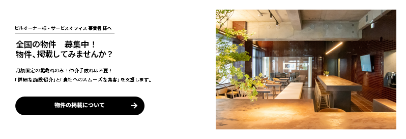「Service Office.jp」は、サービスオフィス(レンタルオフィス)に特化した専門ポータルサイトです。