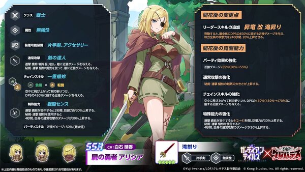 「屍の勇者 アリシア」のスペシャルコスチューム「13の勇者 アリシア(CV:白石晴香さん)」が登場。ドットキャラやバトル中の演出はもちろん、立ち絵イラストやボイスも変化する特別なコスチュームだ。限定パッケージでの販売となるのでお見逃しなく。