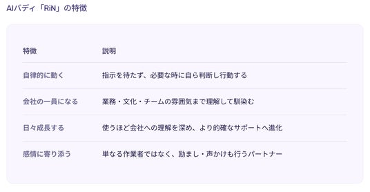 AIバディ「RiN」の特徴