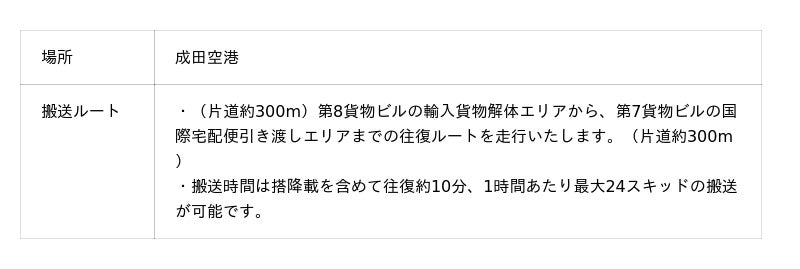 国内初、成田国際空港貨物上屋間における自動運転レベル4の自動搬送サービスを実用化