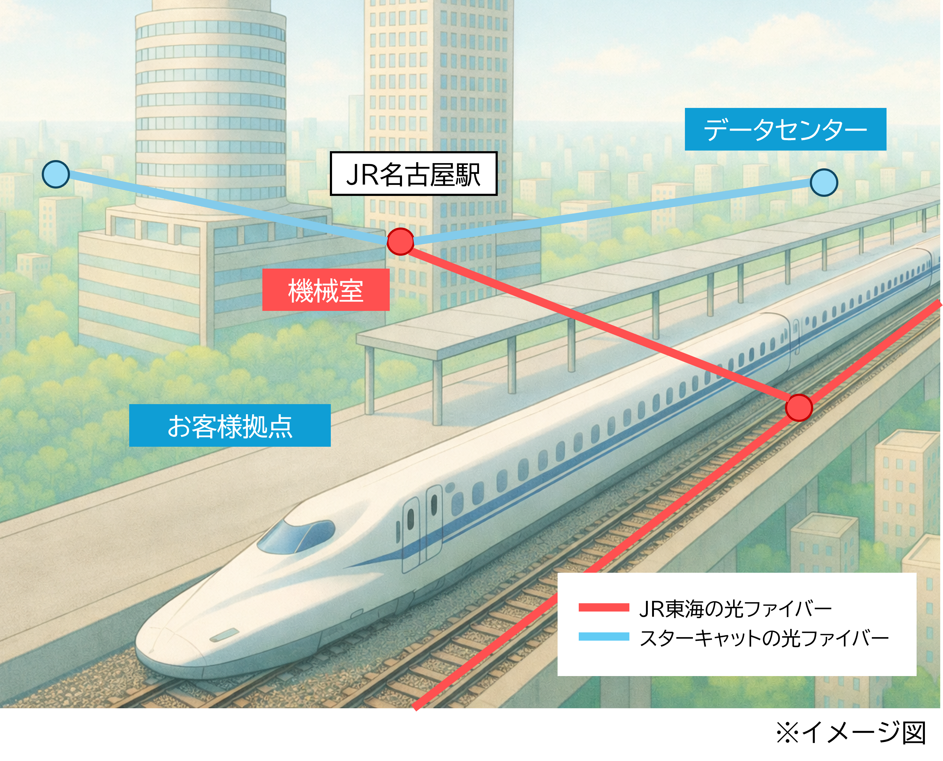 スターキャット株式会社(本社:愛知県名古屋市、代表取締役社長:横井智成、以下「スターキャット」)は、東海旅客鉄道株式会社(JR東海)の名古屋駅へ自社光ファイバーケーブルを入線し、東海道新幹線の光ファイバー心線と接続することが可能となりました 。
