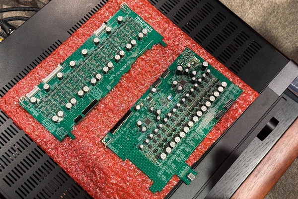 アナログプリアンプ基板の構成は、チャンネルごとに独立した基板を持つAV 10とは異なり、L/Rチャンネル系で基板を2枚に分割する構成(L側基板+R側基板)を採用した。これにより左右チャンネル間のクロストークを排除し、広大な空間表現力を実現している。