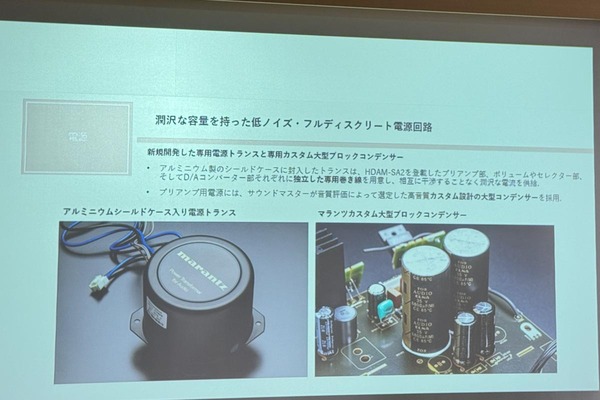 これらはすべて、ソースに含まれる情報をロスなく伝え、パワーアンプへ純粋な信号を送り出すために不可欠な要素。開発においては、物理特性の追求に加え、マランツのサウンドマスターによる徹底したチューニングが行われ、「音楽性が豊かに感じられる」サウンドに仕上げられている。
