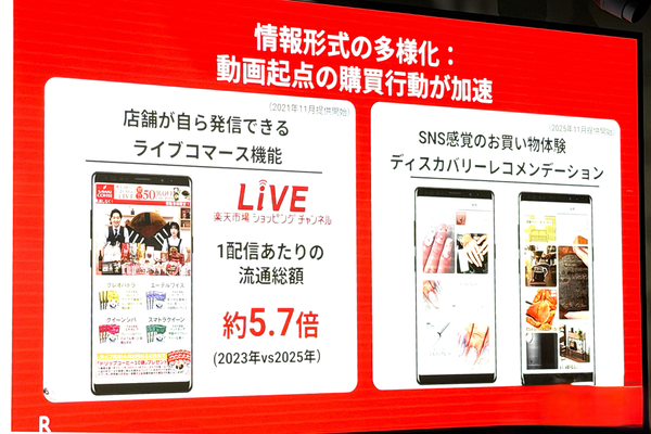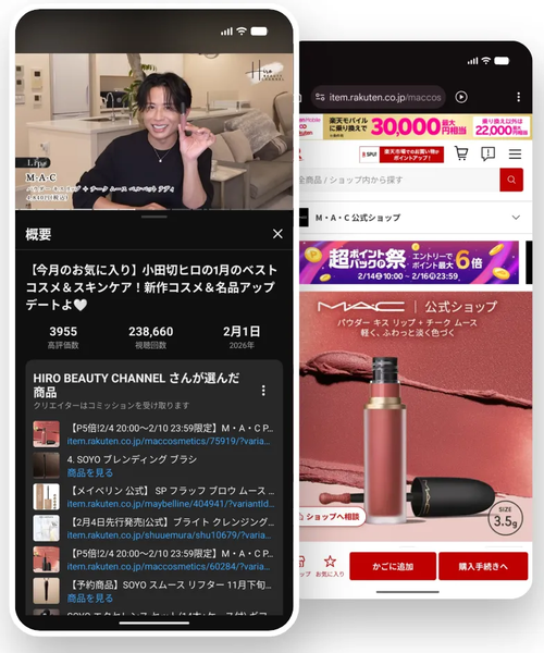 YouTubeでの商品紹介動画(ショッピング関連動画)の再生時間は、日本国内で前年比80%以上増加しているという。膨大な商品数を誇る楽天市場と、圧倒的な発信力を持つYouTubeクリエイターが直結することで、日本のEC市場にどのような化学反応が起きるのか。2026年、動画コマースが大きな変化を巻き起こしそうだ。