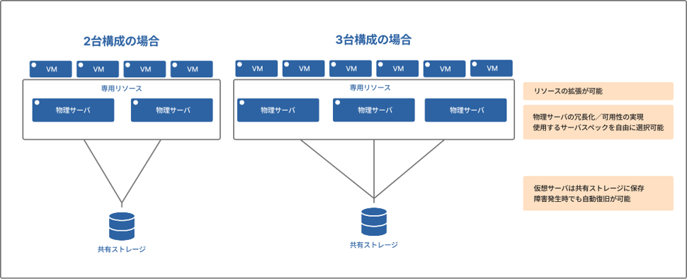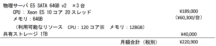 ◼︎構成例:E5 SATA 64GB v2モデルを3台+共用ストレージを1TB利用する場合