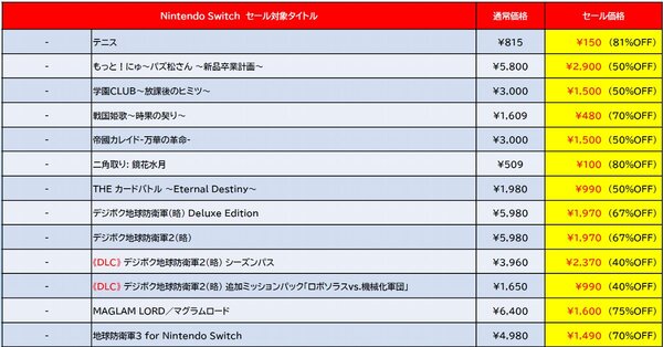 ディースリー・パブリッシャーは2月19日、ニンテンドーeショップで同社のダウンロードソフトがお買い得な「早春セール」を開催。セール期間は、2026年3月11日まで。