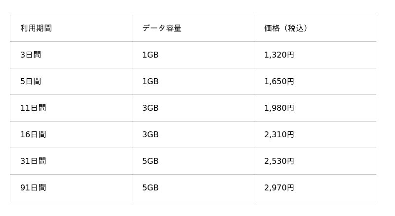 旅行・イベント・お出かけ・お引越し時等の一時的な通信 スマートフォン2台持ち、タブレットなどのサブ端末利用 お子様・高齢者の緊急連絡用、見守り用途 車載ナビ用端末 自宅にWi-Fi環境がない場所での限定的な通信