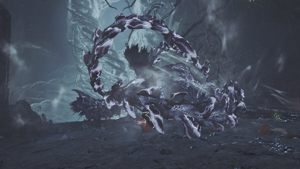 歴戦王アルシュベルドが待つのは、竜谷の跡地の最奥。メインストーリーでも訪れた思い出の場所だ。接敵するやBGMが切り替わり、そのカッコよさにテンションブチ上がり。夢中になって狩猟してたらスクショを忘れる始末