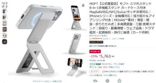 MOFTの「8-in-1多機能スタンド(カード収納付き)」がAmazonでタイムセール中。参考価格6,780円のところ、15%オフの5,763円で販売中。