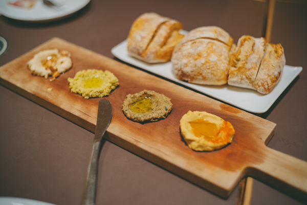 まず注文したのは「フムス4種盛り合わせ」。ひよこ豆の定番から、ナス、里芋、グリーンオリーブと、どれも一口ごとに表情が違って楽しい! 特に印象に残ったのは、里芋×メープルの甘いフムス。デザート感覚でスパークリングなんかと合わせても良さそう…!