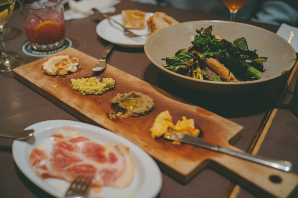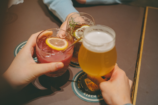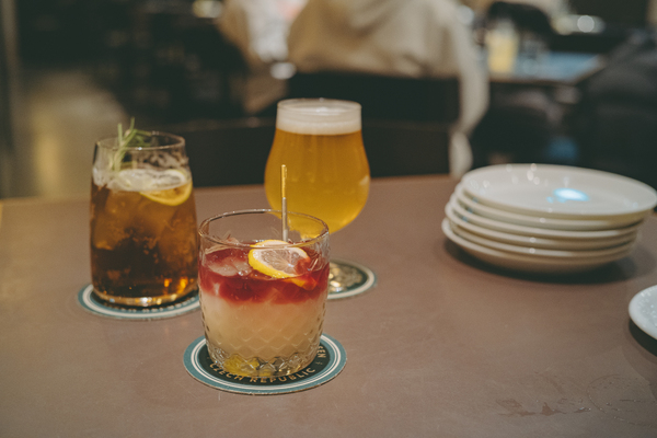 乾杯ドリンクは華やかに!とシグネチャードリンクをチョイス。私はレモンのほろ苦さとほどよい甘みが絶妙な「自家製レモネードビール」で、爽やかに。友人たちはオリジナルカクテルを。「ローズマリーウォッカモスコミュール」はジンジャーエールとライムの組み合わせが爽快で、くいくい進む一杯。「ルービンスタイルNYサワー」はバーボンベースに赤ワイン、そしてなんとカルピスが加わった個性派カクテル。グラスの中で色が混ざると紫色に変化して、とにかく見た目が可愛い! こういう映える演出も女子会には欠かせません。