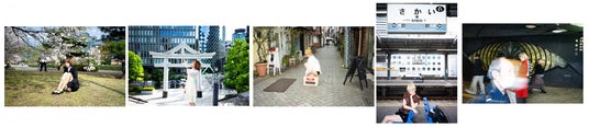 濱未亜のセルフポートレートは、にぎやかな都市の通りの中に、時に場違いとも思える立ち位置で彼女自身を配置している。周囲の環境と必ずしも一致しないポーズで写る彼女には、どこかユーモアが漂う。時には薄着で挑発的な視線をこちらに向ける一方、別の場面では女子学生や若いビジネスウーマンとして、都市生活に完全に溶け込んだ姿を見せる。金髪から黒髪へと姿を変えながら、彼女は恐れずに周囲の空間を自らのものとし、その自立性を示している。ある意味でこれは、被写体が周囲の環境に影響を与えることを示す実演ともいえるだろう。