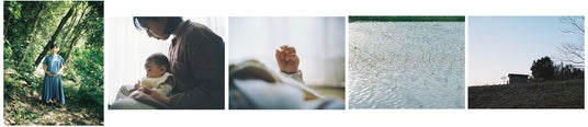 シリーズ「身土不二」において、丹野雄二は普遍的な広がりをもつ実存的な物語を語っている。それは、人間と大地との関係についての物語だ。世界から切り離された、時間の外にある小さな楽園。そこにあるのは、「どこか別の場所」となりうる日本であり、都市の喧騒や狂騒から遠く離れた、心地よく生きられる「別世界」である。時間が止まったかのように感じられ、再び時間の流れを本来のリズムで感じ取ることができるこの瞬間は、なんと優しいことだろう。家という親密な空間の中で一瞬一瞬を味わい、自然が自らのリズムを取り戻すのを受け入れる。繊細さに満ちた彩度を抑えたこれらのイメージの中には、要素の「物質性」が感じられる。赤ん坊の手のやわらかさ、農夫に撫でられる麦畑の中の母親のやさしさ、花や食事の匂い――素朴でありながら共同体的な営みを思わせるそれらの感覚。すべてが、きわめて穏やかな雰囲気の中にある。希望を与えてくれる、ひとつの別世界である。