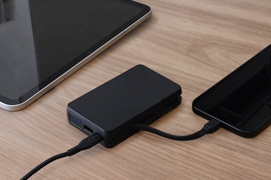 3台同時充電に対応本体内蔵のUSB Type-Cケーブルに加え、USB Type-CポートとUSB Type-Aポートを搭載。外出先でも家でも、これ1台で最大3台のデバイスを同時に充電できます。