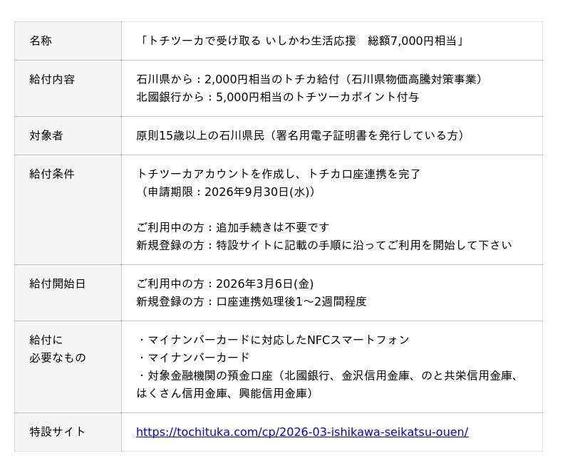 ▼「トチツーカで受け取る いしかわ生活応援 総額7,000円相当」特設サイト