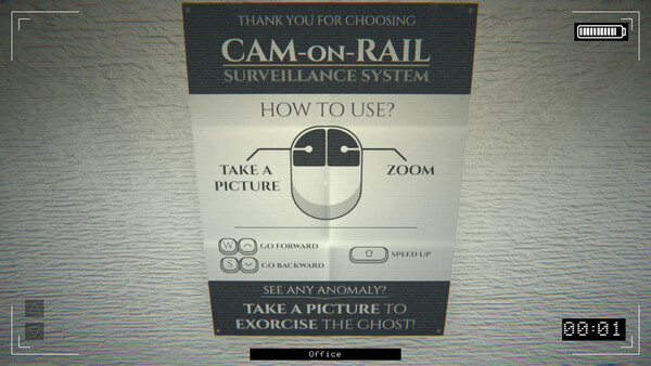 本作は、部屋の天井に設置されたレールに沿ってカメラを動かし、アパートの部屋を移動。超常的なアノマリー(異常)を見つけて写真を撮り、悪魔祓いするゲームとなる。
