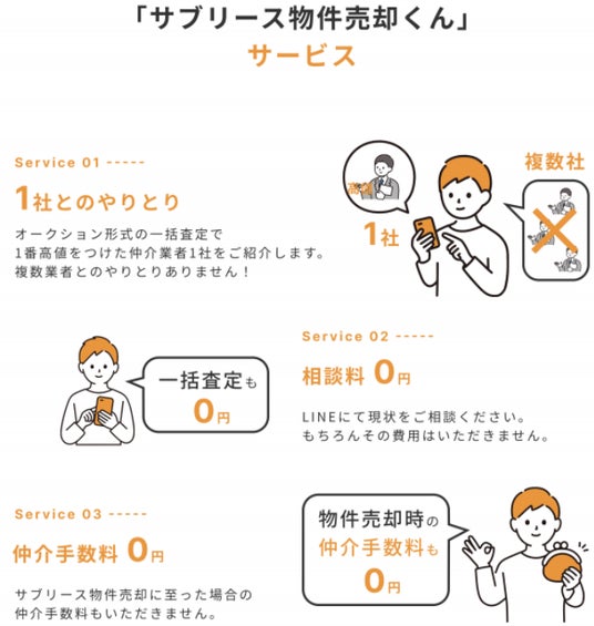 「サブリース物件売却くん」は、サブリース物件をオークション形式で一括査定し、より高値での売却を目指せるWebサービス。一括査定をするだけではなく、サブリース物件の売却についての相談も可能です。