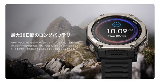 本製品は「予測不能な自然に挑む最強ギア」をコンセプトに、山野から深海まで、戦術からエンデュランスの競技場まで――極限環境においても、長時間のバッテリー駆動、専門的なナビゲーション機能、および回復トレーニングシステムにより、あなたがより遠く、より安全に進むことをサポートします。直径51mmの超大画面AMOLEDディスプレイ(最大輝度3,000nit)、最大級の64GBストレージを搭載し世界中のベースMAPがプリインストールされているため、購入後すぐにオフラインでMAP機能の活用が可能です。最大30日間持続するバッテリー性能、最上級グレード5のチタン合金製ベゼル&ケースバックを採用し、プロレベルのアウトドアウェア体験をもたらします。