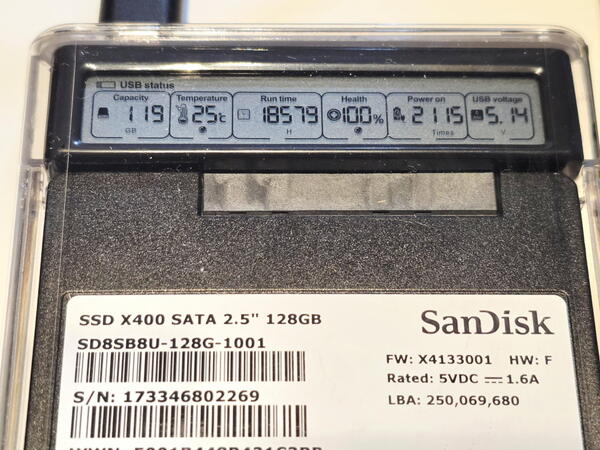 今回はドライブの健康状態を示す2.5インチドライブ用のエンクロージャを衝動買い