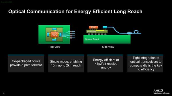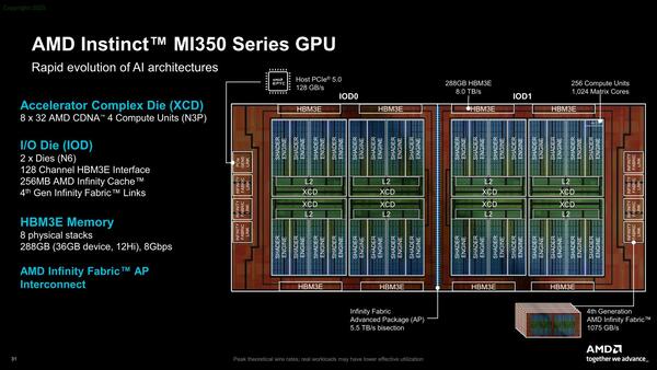 一見単にSoICを使えば簡単に3D実装できるように見えるが、実際にはそこでフルの性能を発揮させるために、相当苦労したものと思われる。説明ではMI350の説明もあったが、この図そのものは以前も公開されていた話である。MI350については次回取り上げたい。