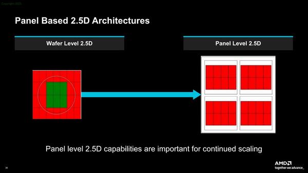 また、3Dメモリー積層に関しても今後は利用されることを示している。外部の長距離接続は、今後光通信が積極的に使われるとしており、またインターポーザーも今後はPLP(Panel Level Package)に推移するとした。