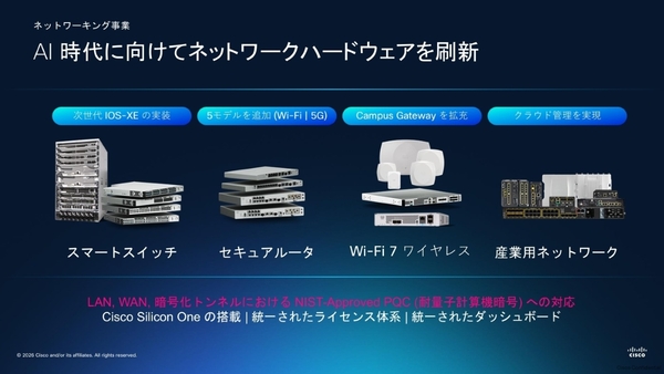 また、濱田氏によると、ネットワーク製品のポートフォリオをここ9ヶ月でほぼ全刷新したという。PQC(耐量子暗号)対応製品も順次リリースしており、2035年までの対応が求められる国際的なロードマップに先手を打つ形で、日本市場への展開が進められている。