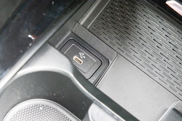 運転席はアルミの加飾パネルがカッコ良さを引き立てています。メルセデス・ベンツらしく、ステアリングリモコンのボタンは多めで、しかも音量調整やクルーズコントロールの車速調整はタッチコントロールボタン方式。USBはType-Cがセンターコンソールに1つと、アームレストの内部に2つ用意されています。